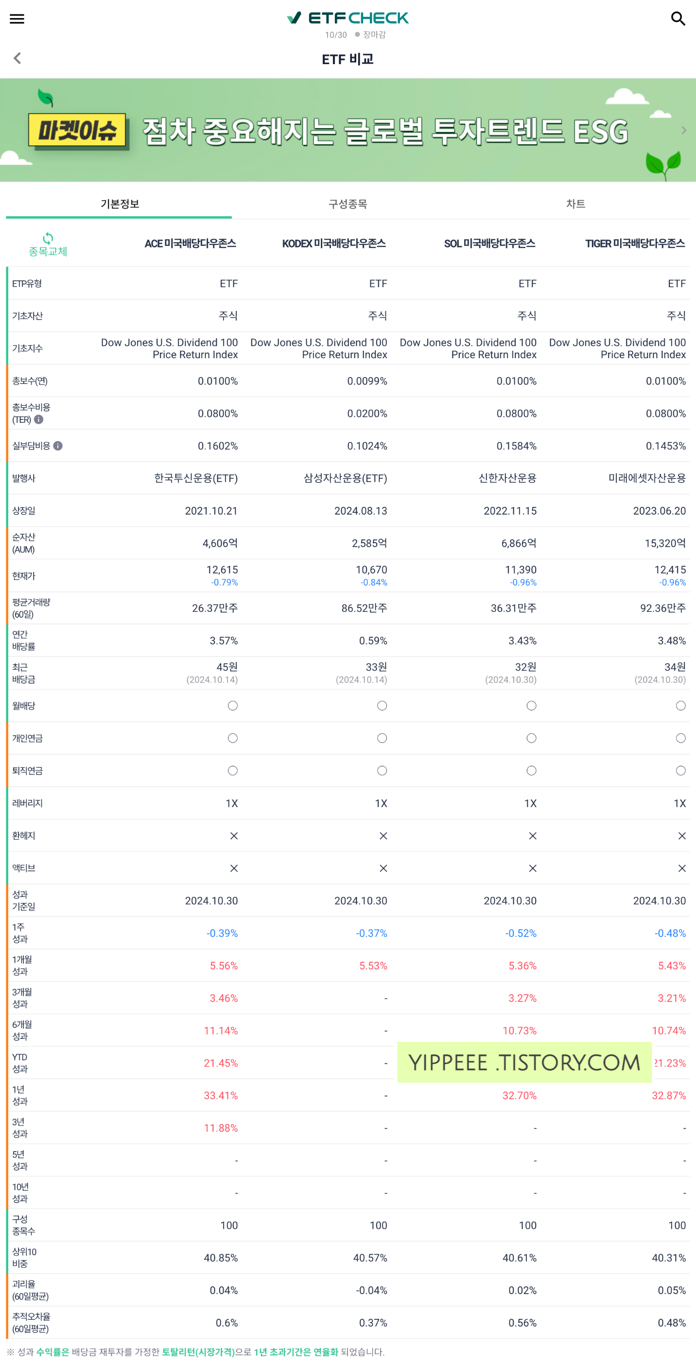 💡 4개 이하의 ETF들을 상세히 비교해보고 싶다면 👉🏻 ETF Check 바로가기