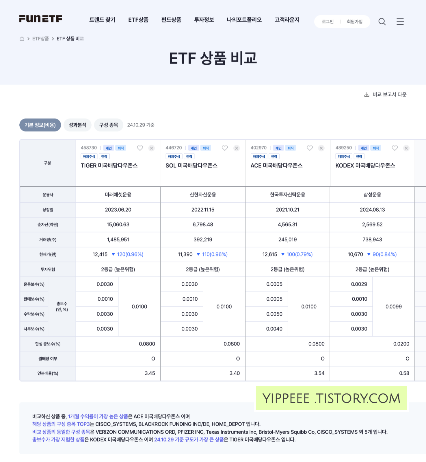 💡 5개 이하의 ETF들을 상세히 비교해보고 싶다면 👉🏻 Fun ETF 바로가기