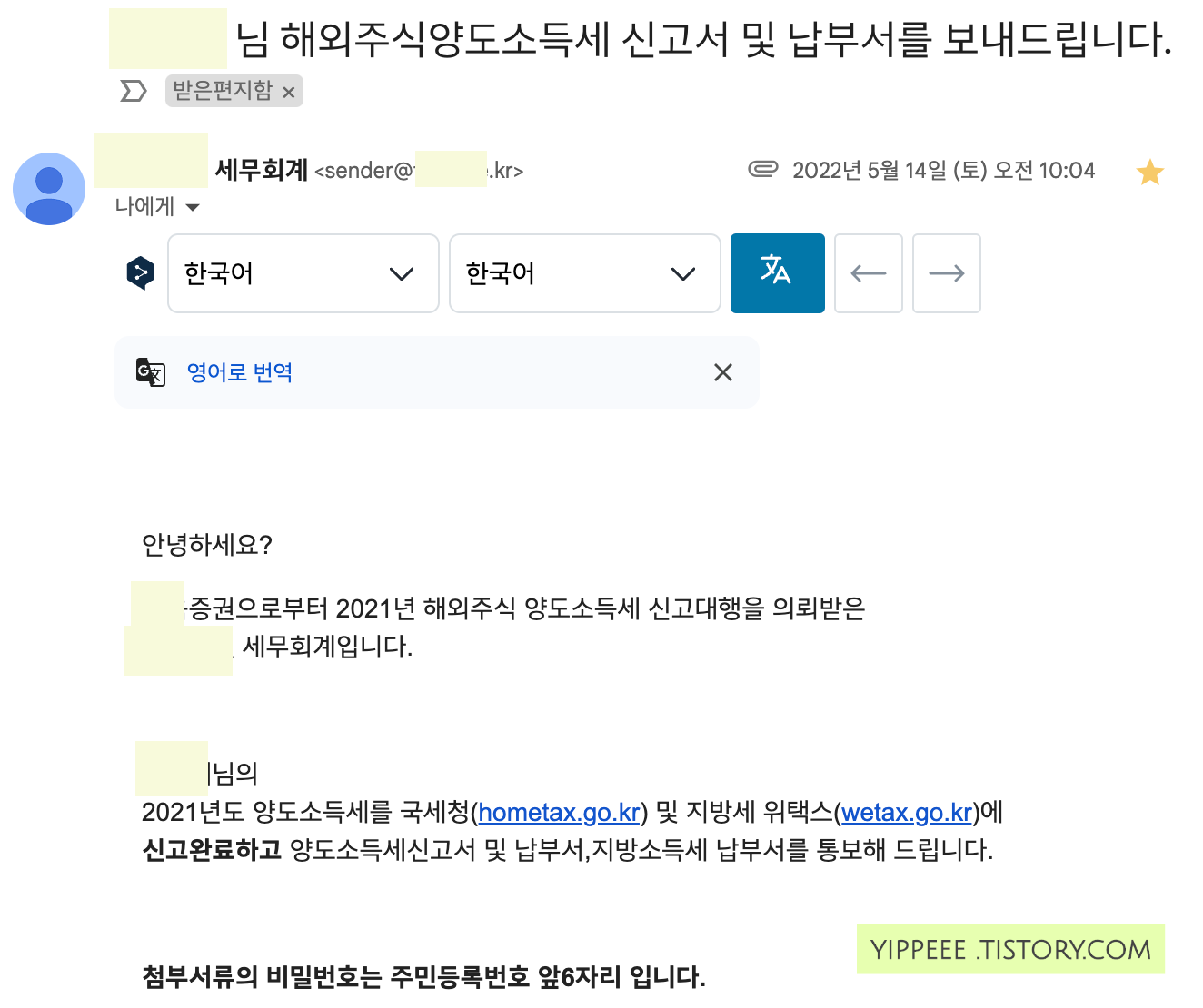 해외 주식에 대한 양도소득세는 매해 5월에 신고 후 납부해야 하는데요, 이 글 아래에 자세히 적어놓겠습니다.